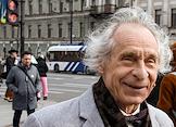 Виды Санкт-Петербурга. Жанровая фотография. Пожилой мужчина кормит голубей на набережной реки Фонтанки.