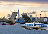 Виды Санкт-Петербурга. Жанровая фотография. Дневная разводка Биржевого моста через реку Малая Нева для завершения ремонта.