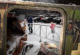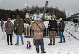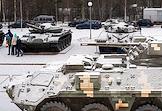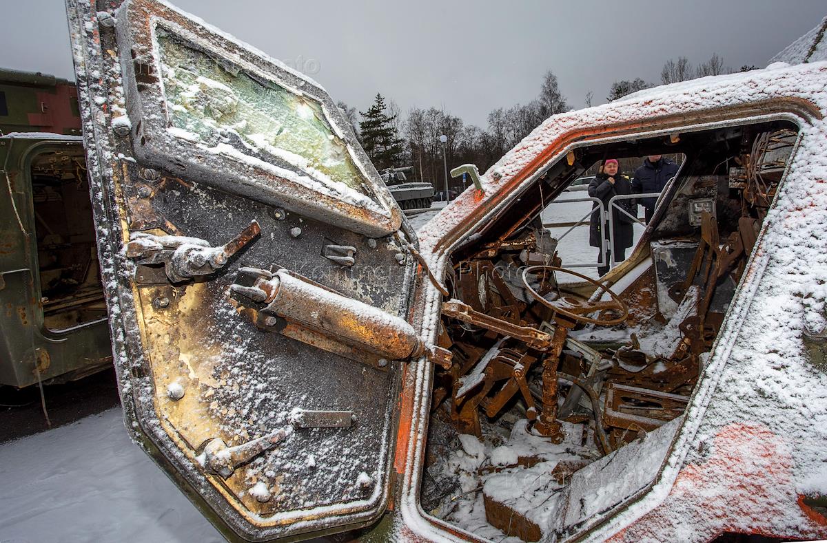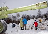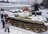 Посетители открытой площадки музея-заповедника "Прорыв блокады Ленинграда". Танки - музейные экспонаты на территории музея-заповедника в Кировском городском поселении.