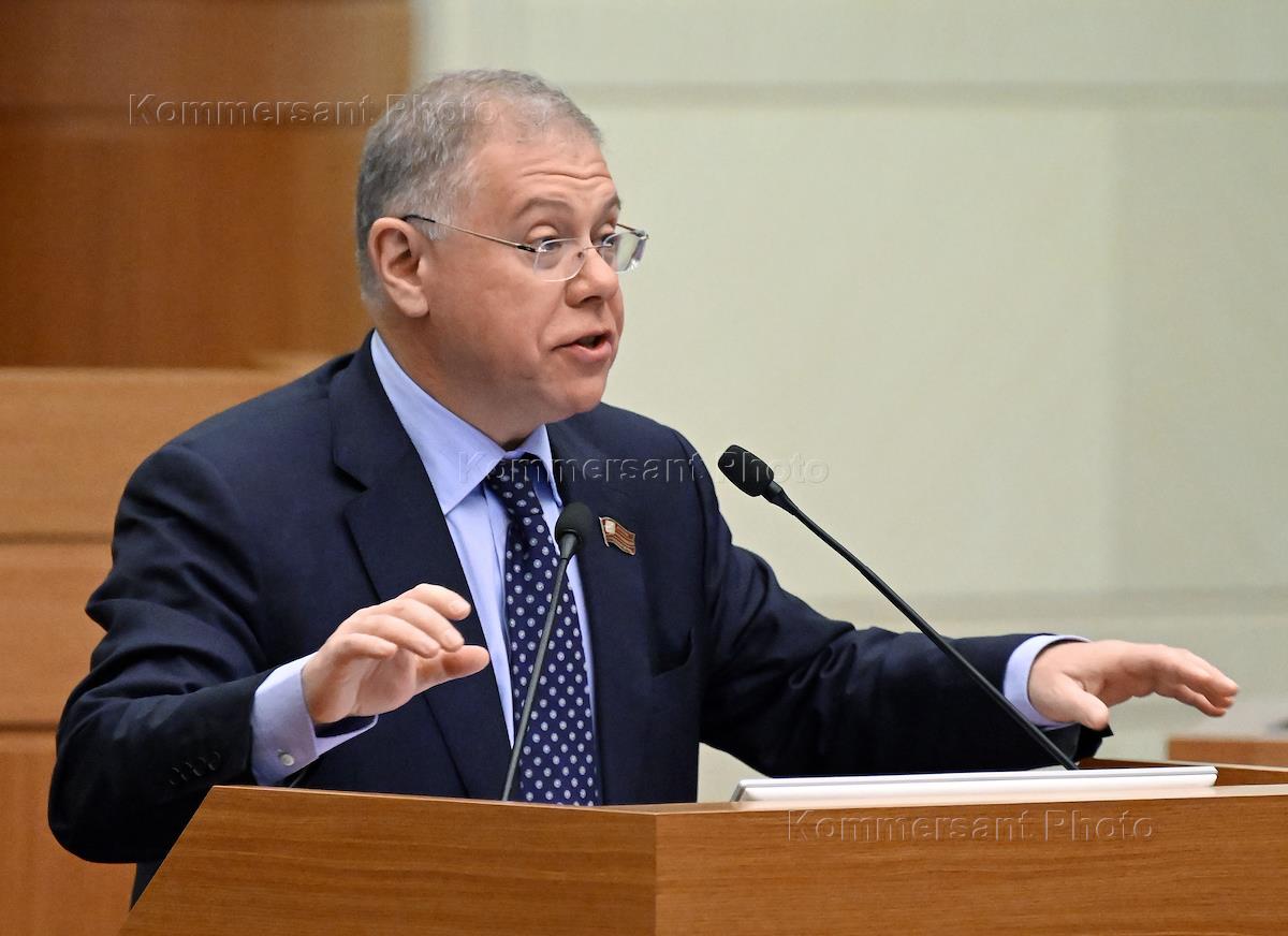 Plenary meeting of the Moscow City Duma. Moscow City Duma deputy Yevgeny Bunimovich during the meeting.