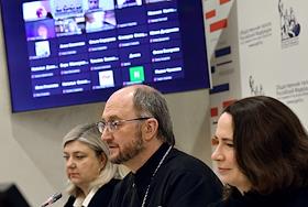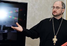 День открытых дверей фонда "Круг добра" в Общественной палате России. Председатель правления Фонда "Круг добра", протоиерей Александр Ткаченко на мероприятии.