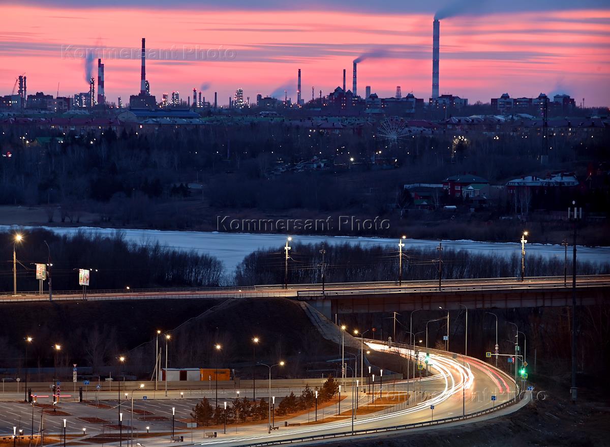 Виды Омска. Жанровая фотография. Мост через Иртыш имени 60-летия ВЛКСМ. Нефтезавод.