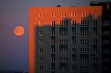 Жанровая фотография. Виды города. Полнолуние в небе над городом.