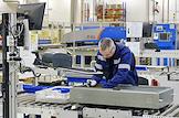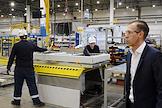 Работа предприятия по производству лифтов "Метеор Лифт" (Meteor lift), бывшего российского подразделения международной компании Otis Worldwide Corporation. Сотрудники на производстве.