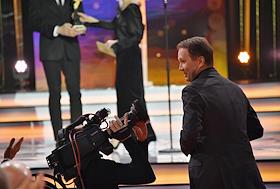 Торжественная церемония вручения Национальной Премии в области кинематографии "Золотой Орел" в 1-м павильоне киноконцерна "Мосфильм". Оператор Михаил Милашин на церемонии.