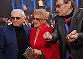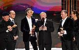 Торжественная церемония вручения Национальной Премии в области кинематографии "Золотой Орел" в 1-м павильоне киноконцерна "Мосфильм". Актер Никита Ефремов (справа), режиссер Петр Тодоровский (второй справа) и актриса Елена Ербакова (слева) на церемонии.