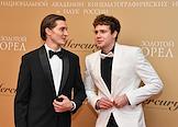 Торжественная церемония вручения Национальной Премии в области кинематографии "Золотой Орел" в 1-м павильоне киноконцерна "Мосфильм". Актеры Матвей Лыков (слева) и Кузьма Сапрыкин (справа) на церемонии.