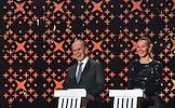 Торжественная церемония вручения Национальной Премии в области кинематографии "Золотой Орел" в 1-м павильоне киноконцерна "Мосфильм". Актеры Марина Зудина (слева) и Никита Ефремов (справа) на церемонии.