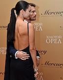 Торжественная церемония вручения Национальной Премии в области кинематографии "Золотой Орел" в 1-м павильоне киноконцерна "Мосфильм". Актеры Диана Пожарская (слева) и Иван Янковский (справа) на церемонии.