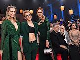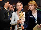 Торжественная церемония вручения Национальной Премии в области кинематографии "Золотой Орел" в 1-м павильоне киноконцерна "Мосфильм". Слева направо: актрисы Лянка Грыу, Екатерина Носик и Алена Чехова на церемонии.
