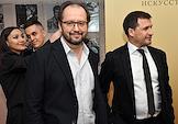 Торжественная церемония вручения Национальной Премии в области кинематографии "Золотой Орел" в 1-м павильоне киноконцерна "Мосфильм". Модельер Сергей Сысоев (слева) на церемонии.