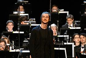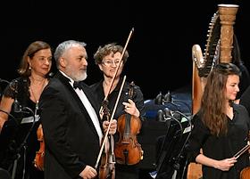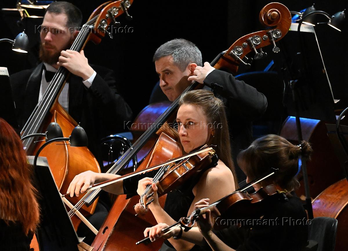 Крещенский фестиваль 2023 в Новой Опере. Концерт симфонической музыки "Адамс, Брамс, Брукнер" на сцене Московского театра "Новая Опера имени Е.В.Колобова". Художественный руководитель и дирижер ансамбля Questa Musica, дирижер Филипп Чижевский во время концерта.