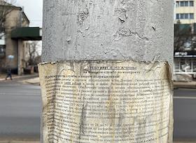 Виды Донецка во время проведения специальной военной операции Вооруженных сил России. Жанровая фотография. Объявление "Требуются мужчины на военную службу по контракту".