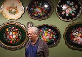 Жостовская фабрика декоративной росписи. Главный художник Жостовской фабрики декоративной росписи Михаил Лебедев в музее фабрики.