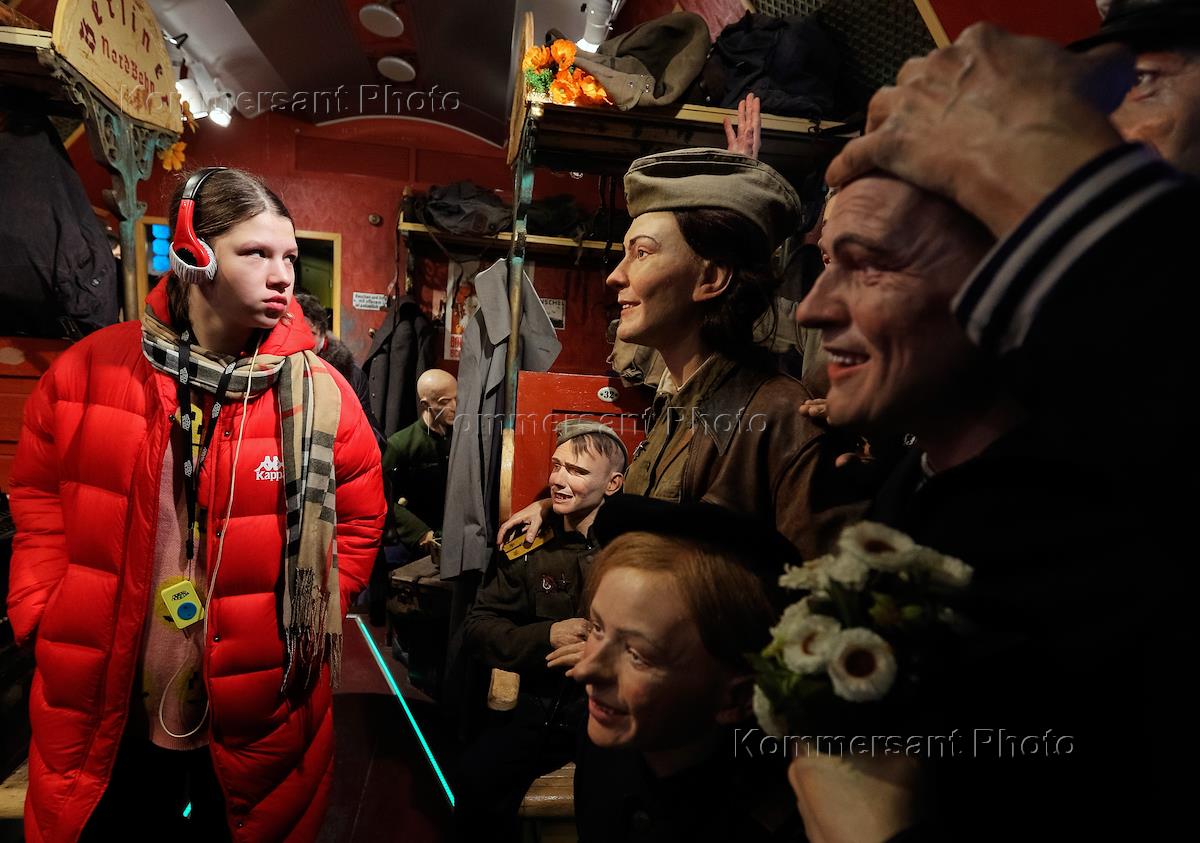 Mobile interactive museum "Victory Train" at the Central Railway Station. The arrival of the train is timed to coincide with the celebration of the 80th anniversary of the victory in the Battle of Stalingrad. Visitors during the inspection of the exposition.