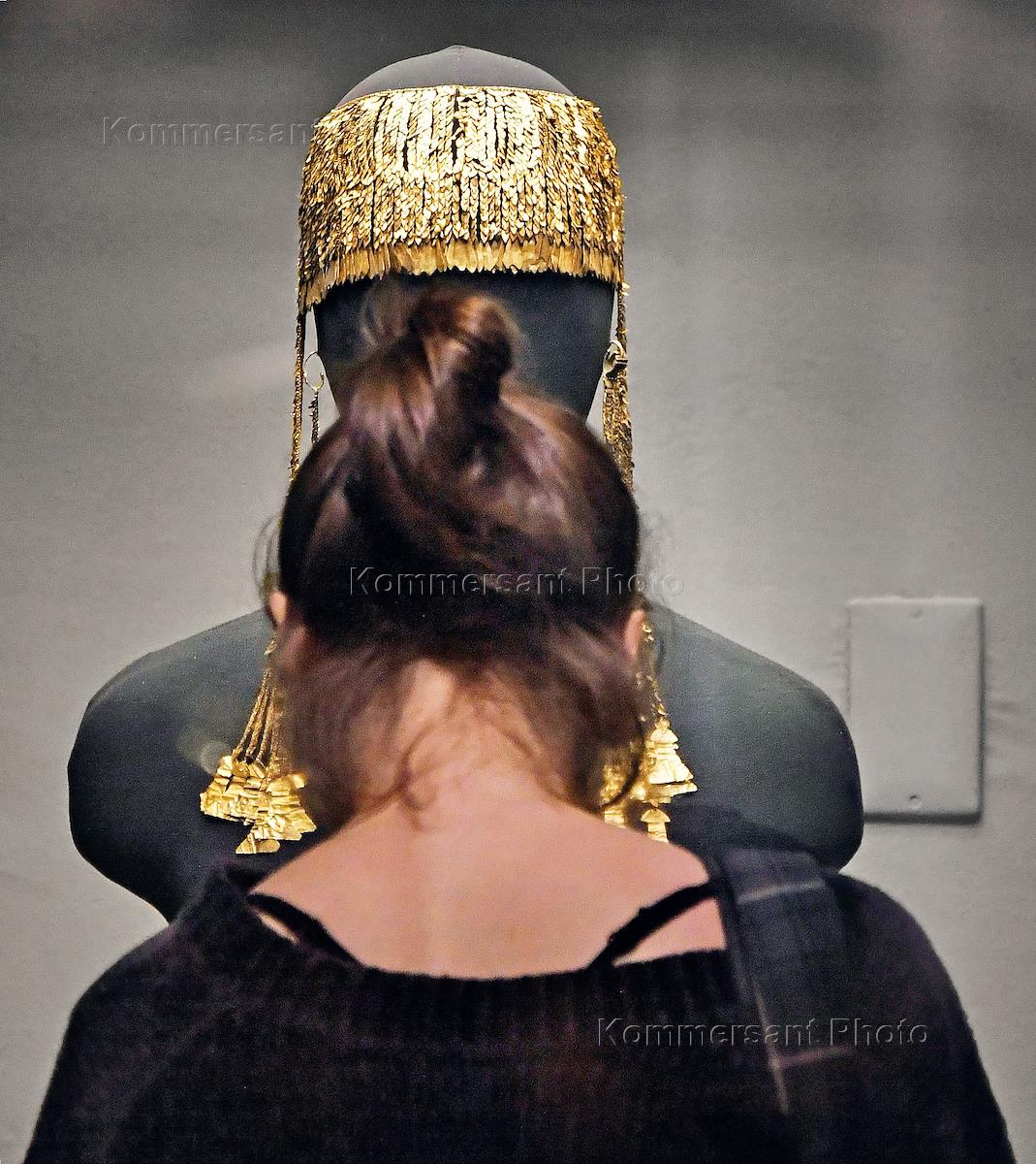 Презентация проекта "Шлиман. Троя рядом", приуроченного к 200-летию со дня рождения археолога Генриха Шлимана и к 150-летию со дня нахождения им "Клада Приама", в Государственном музее изобразительных искусств имени А.С. Пушкина. Посетители во время осмотра экспозиции в рамках проекта.