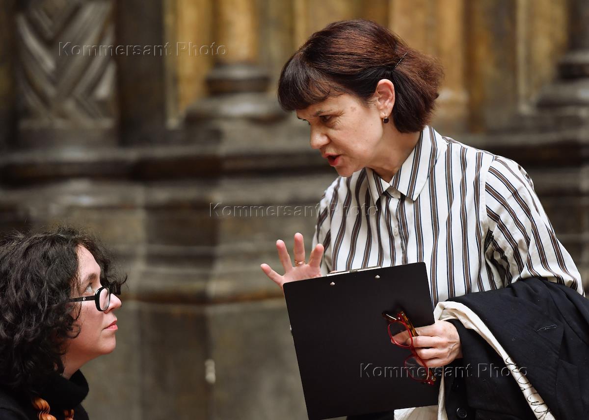 Презентация проекта "Шлиман. Троя рядом", приуроченного к 200-летию со дня рождения археолога Генриха Шлимана и к 150-летию со дня нахождения им "Клада Приама", в Государственном музее изобразительных искусств (ГМИИ) имени А.С. Пушкина. Директор ГМИИ имени А.С. Пушкина Марина Лошак (слева) и заведующий отделом искусства и археологии античного мира ГМИИ имени А.С. Пушкина Владимир Толстиков (справа) во время презентации.