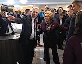 Пленарное заседание Совета Федерации (СФ) России. Члены СФ России перед началом заседания. Заместитель председателя СФ России Галина Карелова (слева) и представитель от исполнительного органа государственной власти Кировской области Виктор Бондарев (справа) в фойе здания.