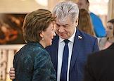 Пленарное заседание Совета Федерации (СФ) России. Выставка "Охрана здоровья матери и ребенка" в фойе здания СФ России. Председатель СФ России Валентина Матвиенко на выставке.