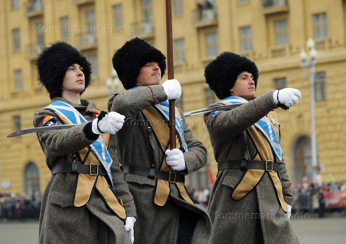 Военный парад в честь 80-й годовщины победы в Сталинградской битве на площади Павших Борцов. Представители местного отделения казачьего войска Донского во время парада.