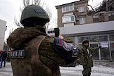 Виды Донецка во время проведения специальной военной операции Вооруженных сил России. Последствия обстрела Киевского района. Многоквартирный жилой дом на улице Артема, поврежденный в результате обстрела. Сотрудники Совместного центра контроля и координации (СЦКК) ДНР во время работы.