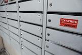 Жанровая фотография. Почтовые ящики жильцов дома в подъезде. Наклейка на ящике "Должник за жилищно-коммунальные услуги".