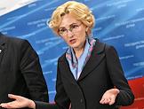Заседание Парламентской комиссии по расследованию деятельности биолабораторий США на Украине в Государственной думе (ГД) России. Заместитель председателя ГД России Ирина Яровая во время пресс-подхода после заседания.
