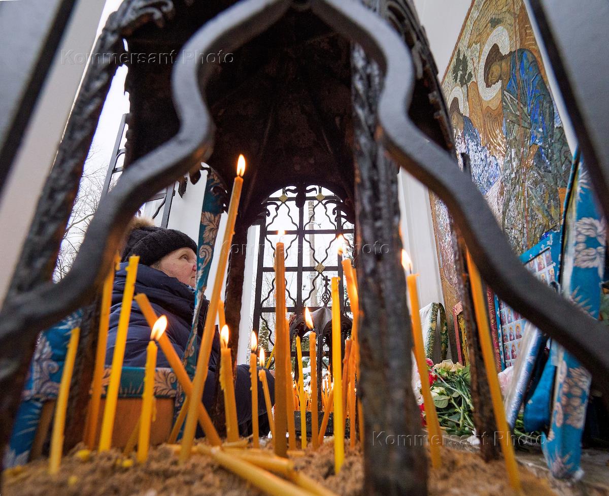 День памяти Святой Блаженной Ксении Петербургской на Смоленском кладбище. Жанровая фотография. Верующие у часовни Святой Блаженной Ксении Петербургской.