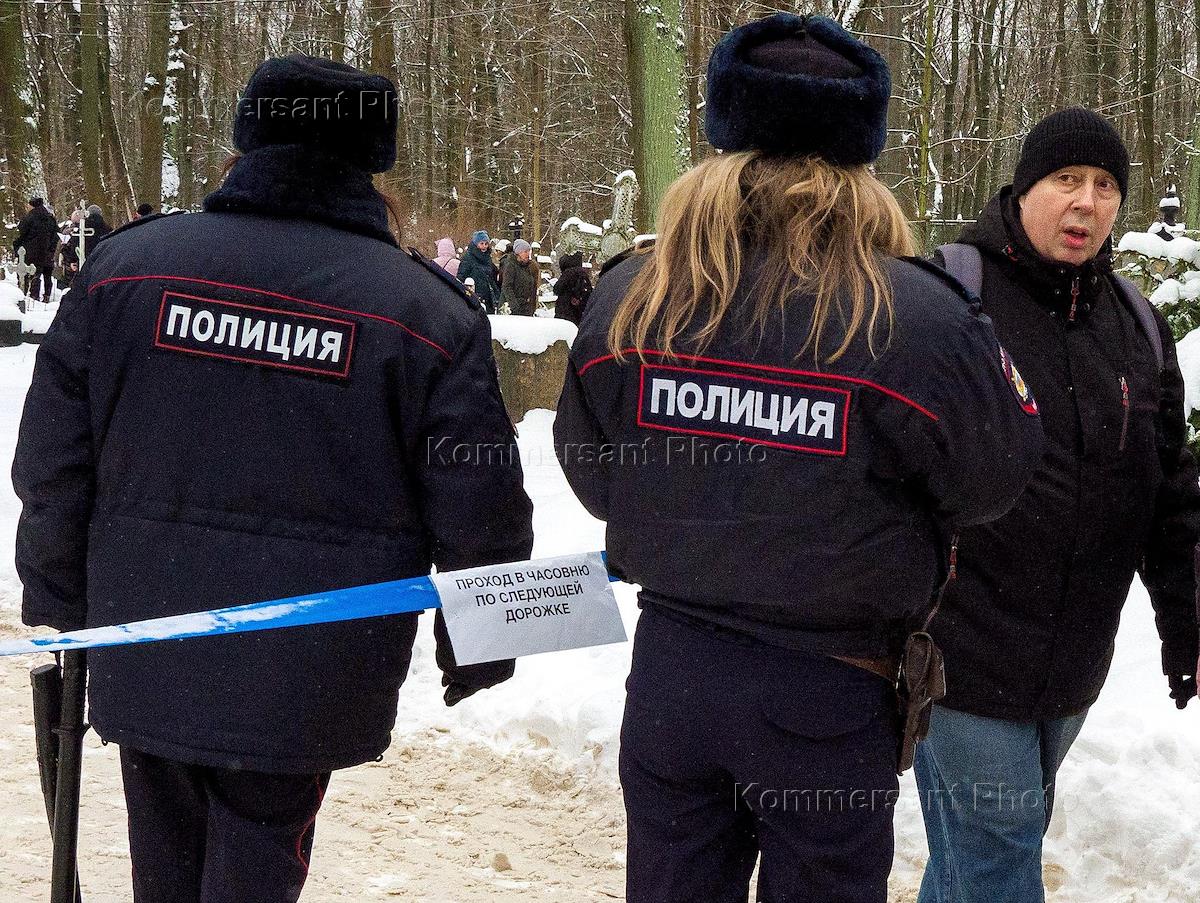День памяти Святой Блаженной Ксении Петербургской на Смоленском кладбище. Жанровая фотография. Сотрудники полиции во время дежурства на кладбище.