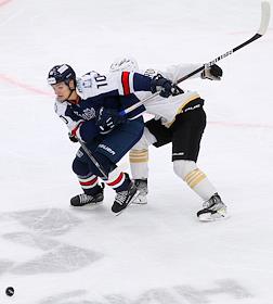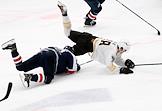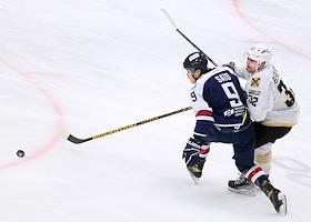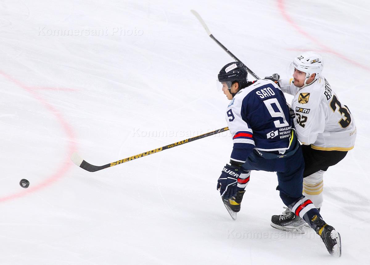 Фонбет Чемпионат КХЛ. Матч по хоккею между командами "Торпедо" (Нижний Новгород) и "Адмирал" (Владивосток) на стадионе "Нагорный". Игрок команды "Торпедо" Ю Сато (слева) и игрок команды "Адмирал" Антон Берлёв (справа) во время во время матча.