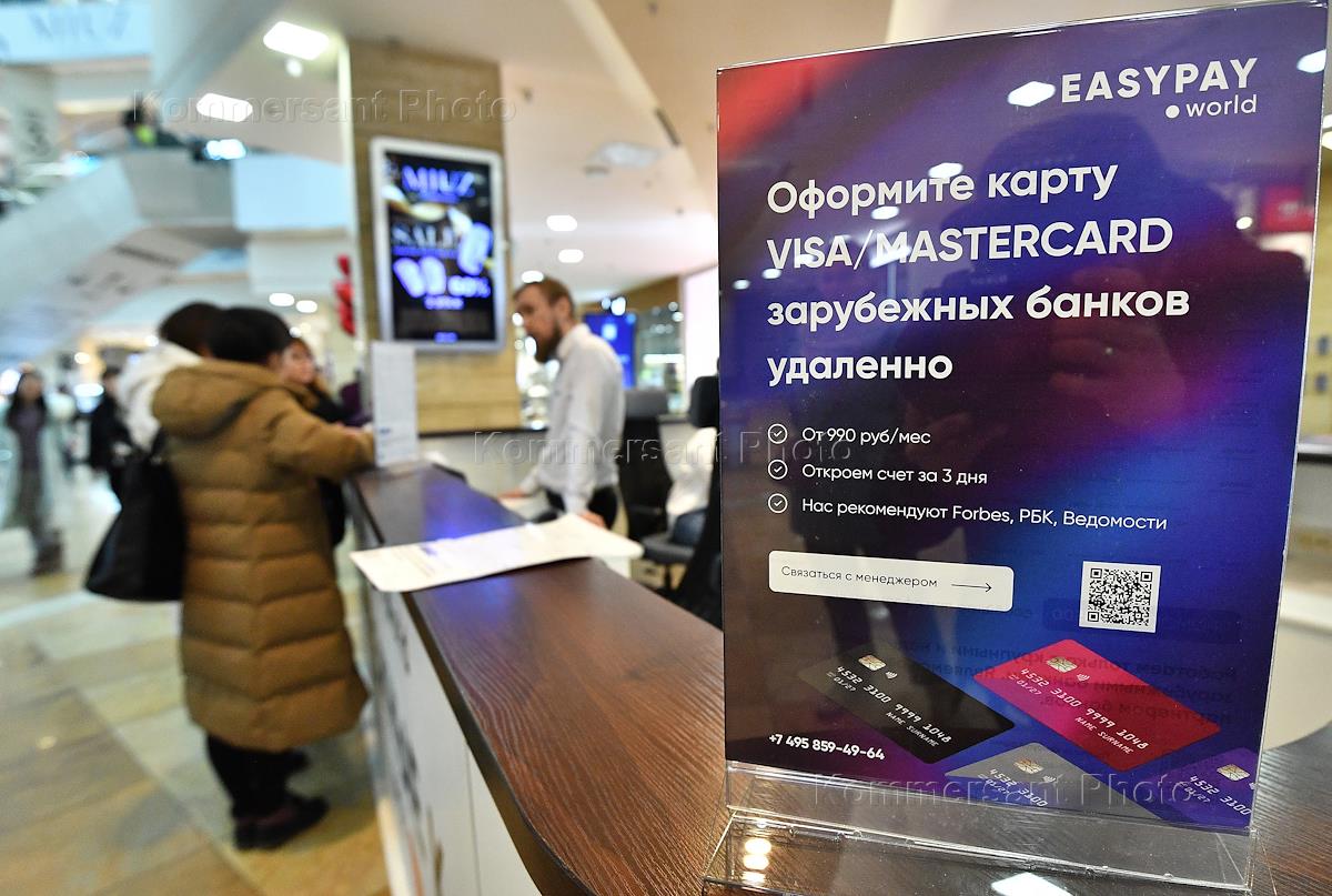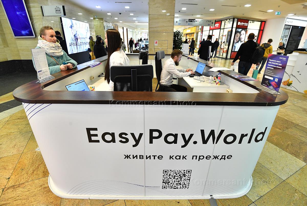 Офлайн-магазин EasyPay.World по продаже карт иностранных банков в торгово-развлекательном центре "Афимолл Сити". Жанровая фотография.