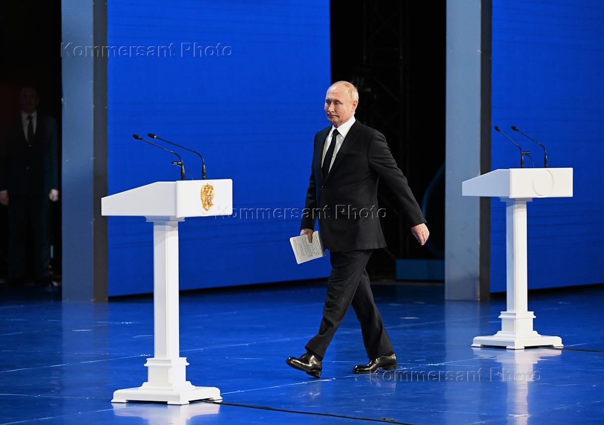 Церемония вручения государственных наград на торжественном вечере в честь 100-летия отечественной гражданской авиации в Государственном Кремлевском дворце. Президент России Владимир Путин во время церемонии.