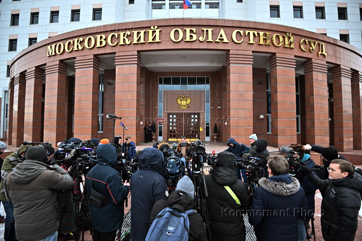 Оглашение приговора по делу бывшего губернатора Хабаровского края Сергея Фургала, обвиняемого в заказных убийствах, в Московском областном суде. Журналисты у здания суда.