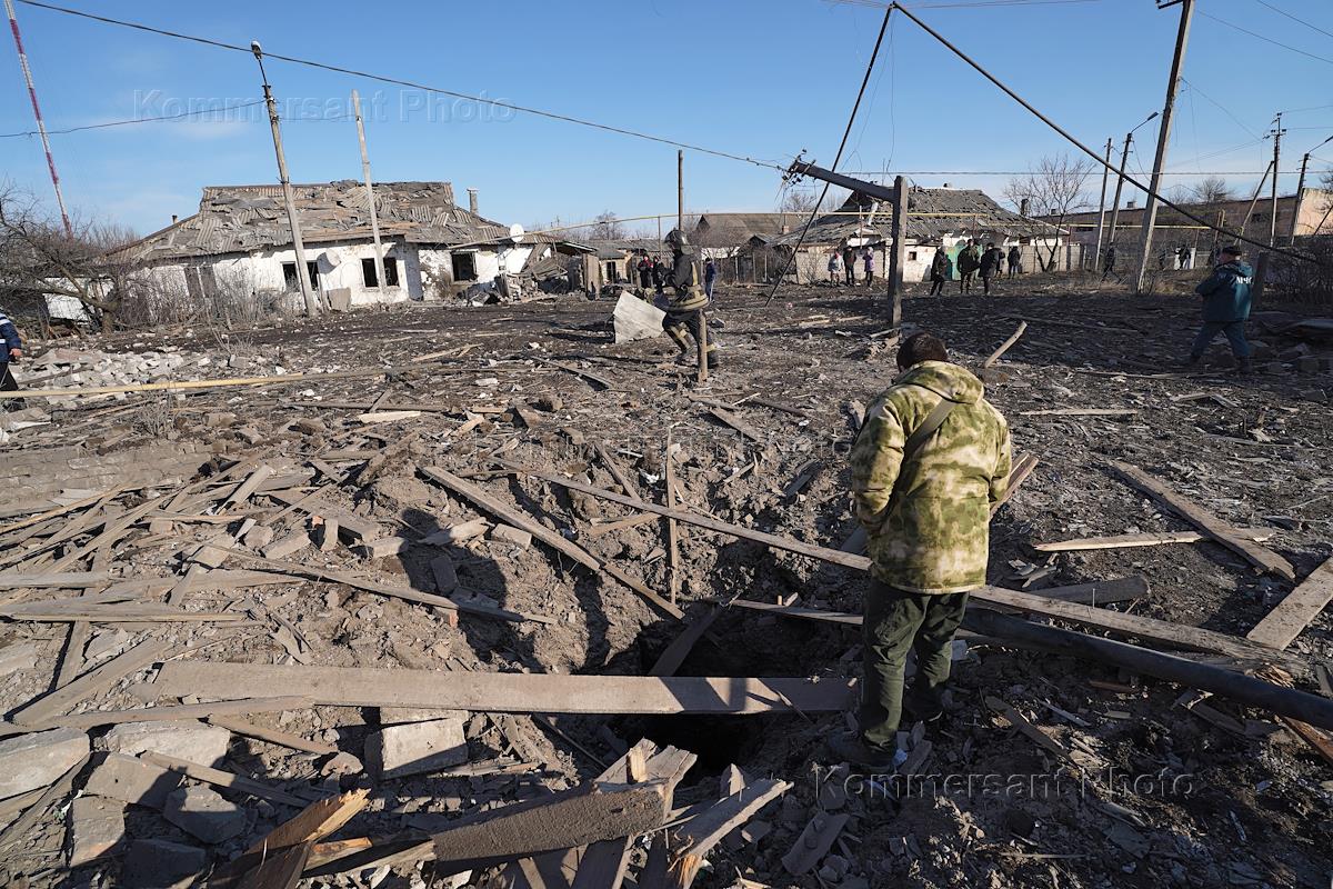 Виды Донецка во время проведения специальной военной операции Вооруженных сил России. Последствие обстрела Петровского района. Жилой дом, разрушенный в результате попадания ракеты HIMARS.