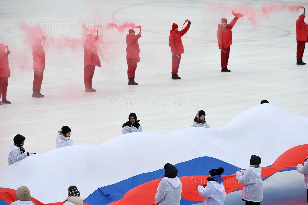 Суперфинал личного чемпионата России по ледовым мотогонкам в Красногорске на стадионе "Зоркий". Церемония открытия суперфинала.