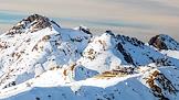 Виды горнолыжного курорта Роза Хутор. Жанровая фотография. Горные склоны в снегу.