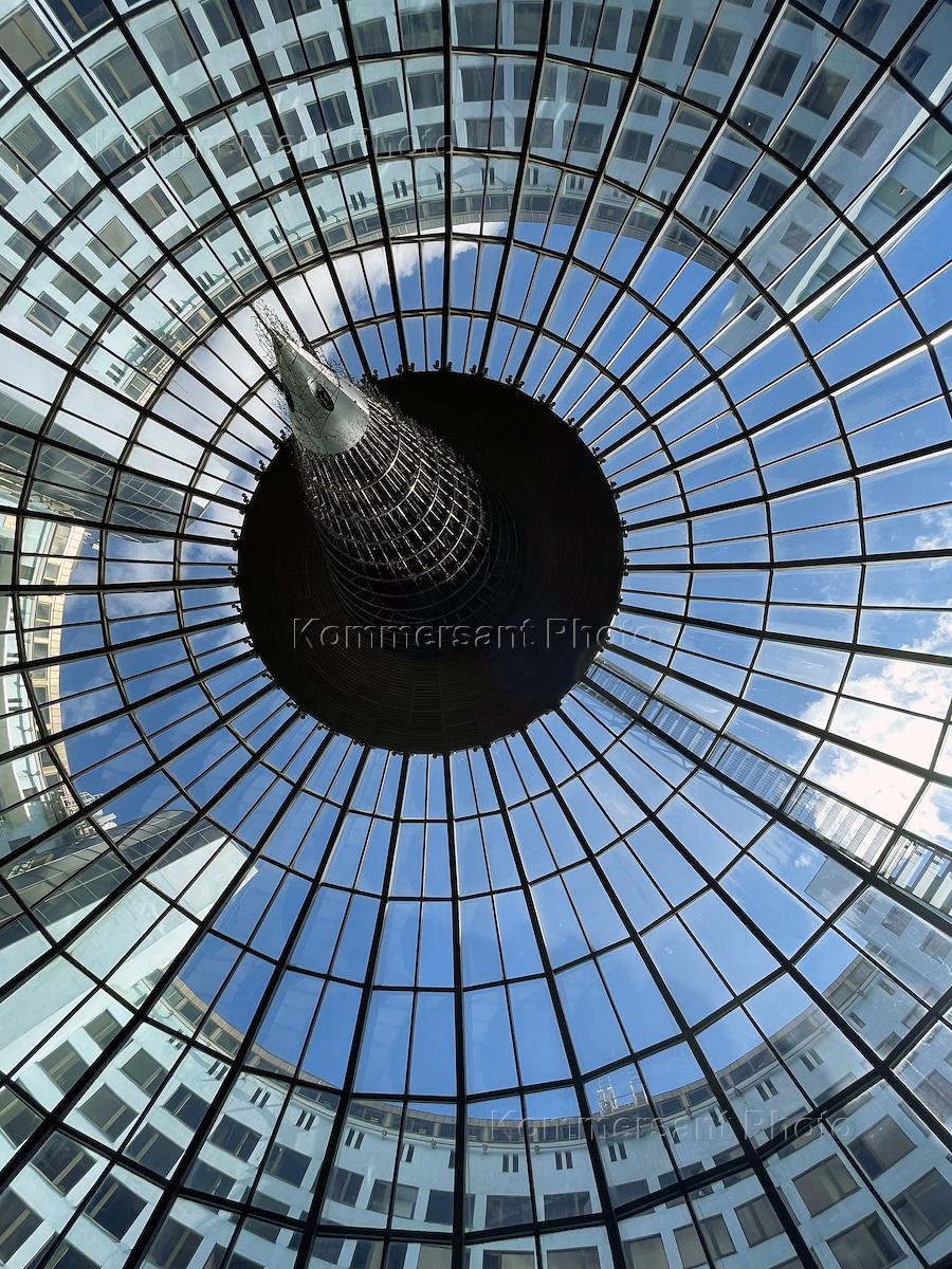Жанровая фотография. Фрагмент интерьера бизнес-центра Петровский форт. Стеклянный купол центре здания.