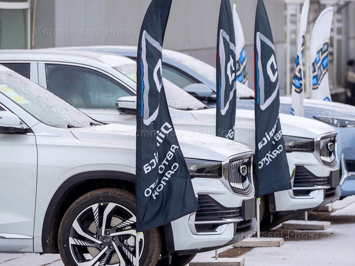 Жанровая фотография. Китайские автомобили на стоянке у автосалона.