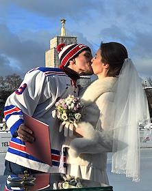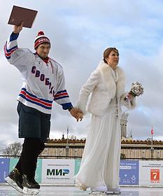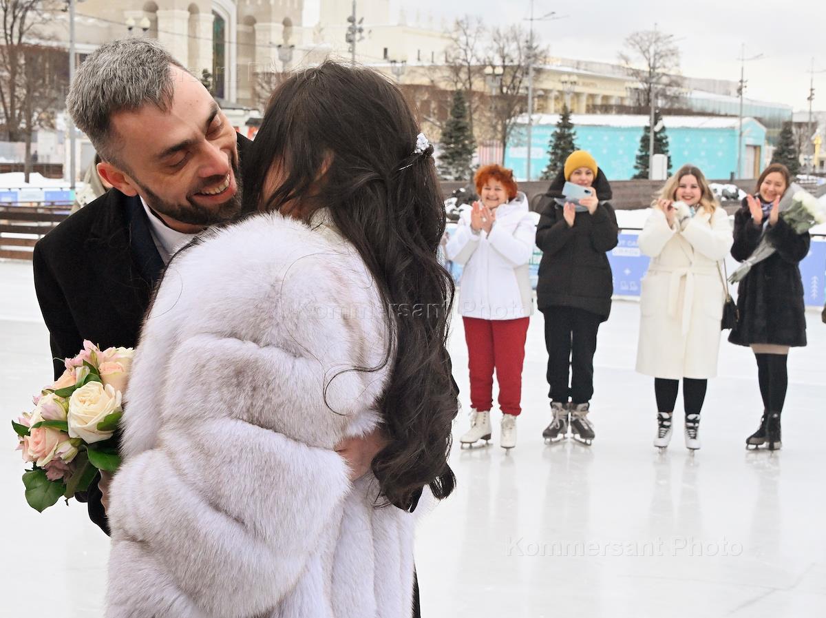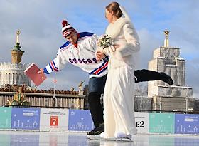 Торжественная церемония регистрации брака в День всех влюбленных на катке ВДНХ.