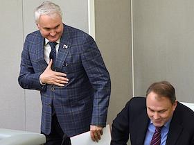 Пленарное заседание Государственной думы (ГД) России. Первый заместитель председателя комитета ГД по культуре Александр Шолохов (слева) во время заседания.