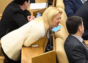 Пленарное заседание Государственной думы (ГД) России. Член комитета ГД России по физической культуре и спорту Рима Баталова (справа) во время заседания.