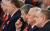 Торжественный вечер-концерт, посвященный 30-летию возрождения Коммунистической партии (КПРФ), в Колонном зале Дома Союзов. Лидер КПРФ, член комитета Государственной думы России по делам Содружества Независимых Государств, евразийской интеграции и связям с соотечественниками Геннадий Зюганов (третий слева) во время мероприятия.