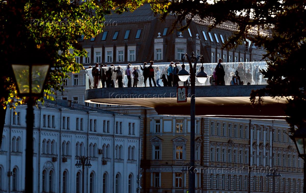 Виды Москвы. Ландшафтный парк "Зарядье". Жанровая фотография. Люди на парящем мосту.