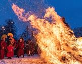 Хуралы и обряды в Петербургском Дацане Гунзэчойнэй по случаю наступления Сагаалгана - Буддийского Нового года по лунному календарю. Возжигание ритуальных костров на приводной территории Санкт-Петербургского Дацана Гунзэчойнэй на набережной реки Большая Невка.