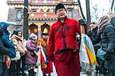 Хуралы и обряды в Петербургском Дацане Гунзэчойнэй по случаю наступления Сагаалгана - Буддийского Нового года по лунному календарю. Ламы во дворе Санкт-Петербургского Дацана Гунзэчойнэй.