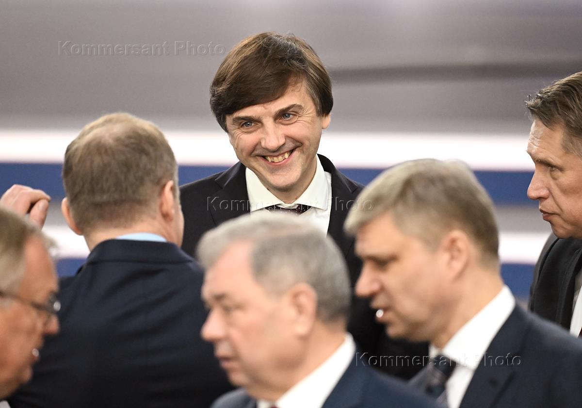 Церемония оглашения ежегодного Послания президента России Владимира Путина к Федеральному Собранию в Гостином дворе. Министр просвещения России Сергей Кравцов (в центре) перед началом церемонии.