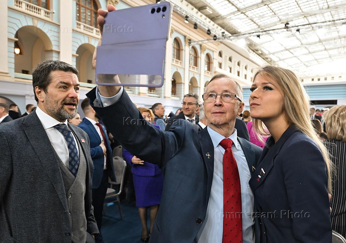 Церемония оглашения ежегодного Послания президента России Владимира Путина к Федеральному Собранию в Гостином дворе. Член комитета Государственной думы России по науке и высшему образованию Анатолий Карпов после церемонии.