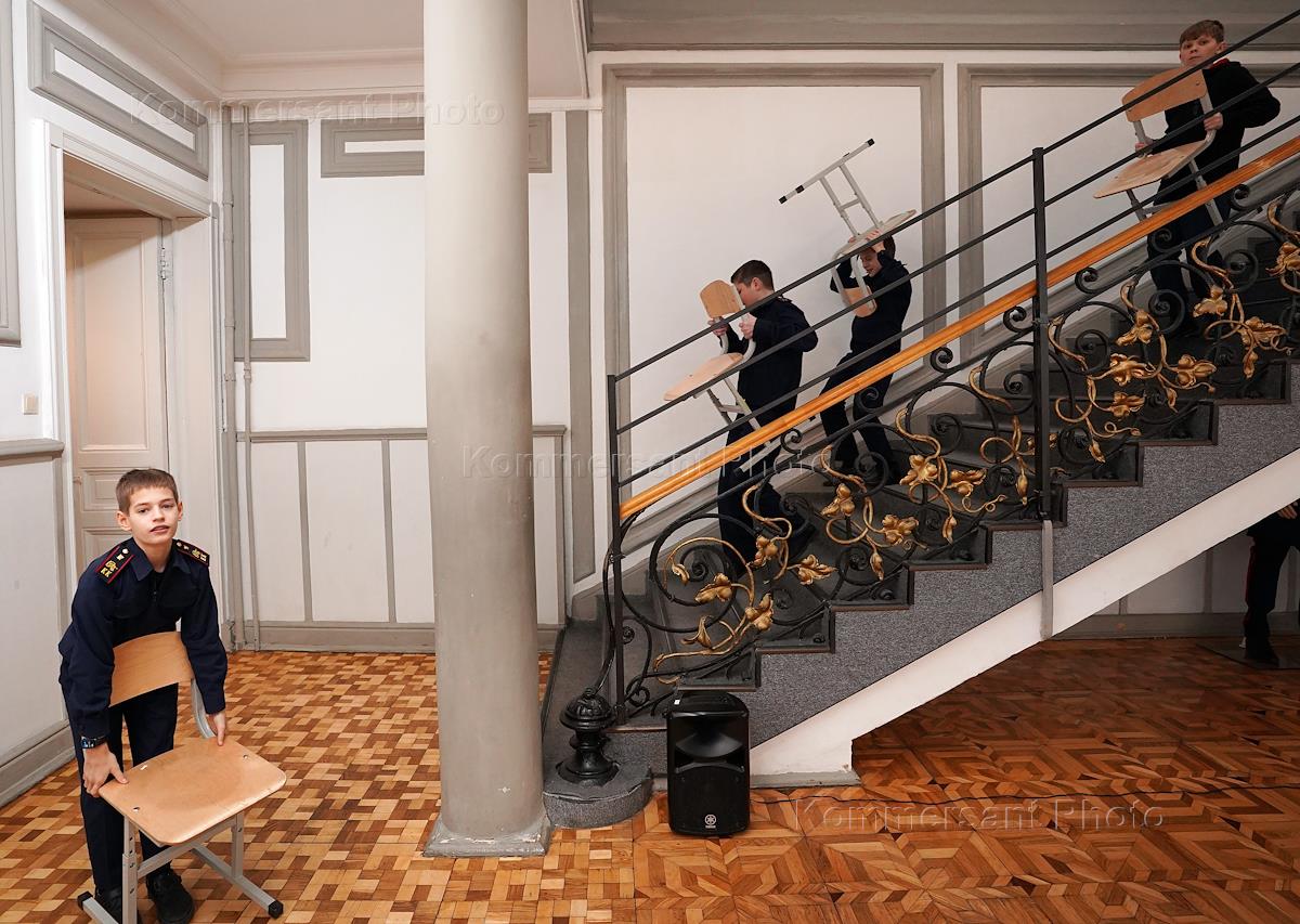 Курсанты кадетского корпуса Следственного Комитета России перед "Уроком мужества", посвященному 34-й годовщине вывода советских войск из Афганистана.