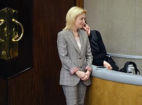 Пленарное заседание Государственной думы (ГД) России. Председатель комитета ГД России по развитию гражданского общества, вопросам общественных и религиозных объединений Ольга Тимофеева (слева) во время заседания.