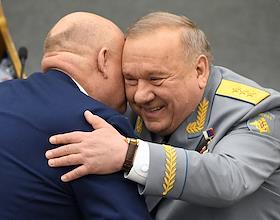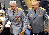 Пленарное заседание Государственной думы (ГД) России. Руководитель фракции "Единая Россия" в ГД России Владимир Васильев (слева) и заместитель председателя комитета ГД России по развитию гражданского общества, вопросам общественных и религиозных объединений Владимир Шаманов (справа) перед началом заседания.